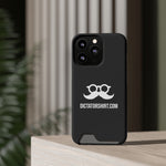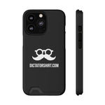 Keep your essentials safe and stylish with DictatorShirt's Black Phone Case-Cardholder Combo. You can slip your debit or visa card directly into your phone's case. Made from durable polycarbonate, this case offers superior impact resistance, ensuring your phone stays protected through daily wear and tear.